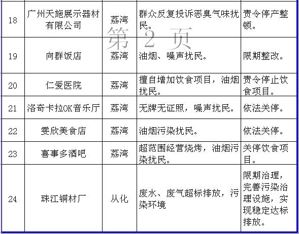 廣州市2010年需掛牌督辦環境整治企業名單