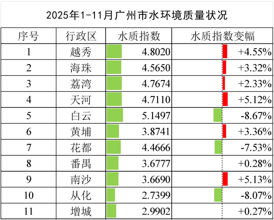 廣州市地表水環境質量狀況(2025年1-11月)
