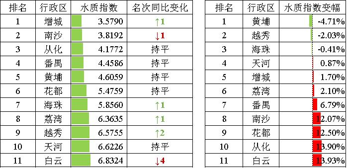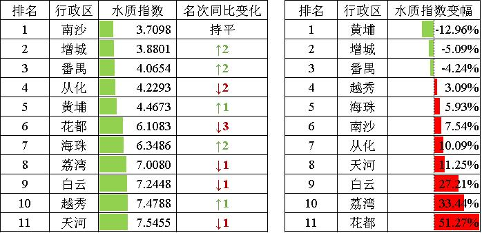 注:1.水質(zhì)指數(shù)變幅為水質(zhì)指數(shù)同比,小于0表示改善,大于0表示變差。