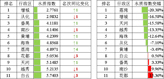 注:1.水質(zhì)指數(shù)變幅為水質(zhì)指數(shù)同比,小于0表示改善,大于0表示變差。