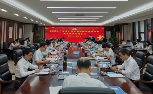 4月19日上午,廣東省廣州生態環境監測中心站召開2021年全面從嚴治黨會議,站黨委、站領導班子、中層以上領導、各支部書記、工會主席、團支部書記共41人參加會議。