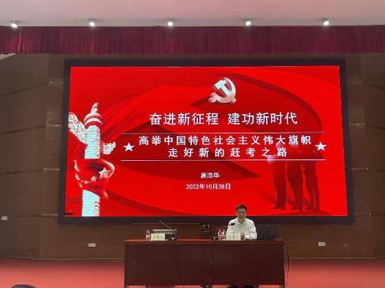 會上,廣州監測站黨委書記、站長唐浩華講授了黨課《奮進新征程 建功新時代——高舉中國特色社會主義偉大旗幟 走好新的趕考之路》,原原本本傳達學習黨的二十大精神,結合習近平生態文明思想在廣州的具體實踐,從污染物減排、環境管理、現代環境監測體系建設三個方面總結回顧新時代十年的工作成果,對新時代新征程生態環境監測事業的使命任務作出部署。