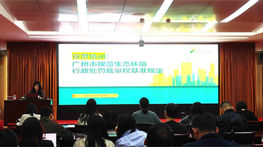 為進一步提升行政處罰裁量權運用的規范化、標準化,市生態環境局于2025年2月27日舉辦《廣州市規范生態環境行政處罰裁量權基準規定》(以下簡稱《規定》)現場宣貫培訓會。相關處室、各分局、監測站及直屬單位近50人參加培訓。