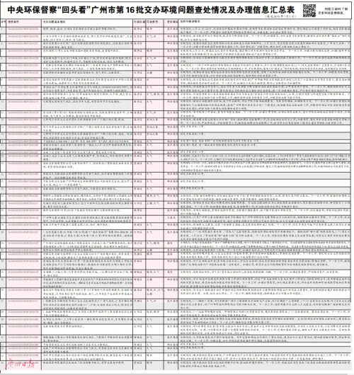 [廣州日報]中央環保督察“回頭看”廣州市第16批交辦環境問題查處情況及辦理信息匯總表