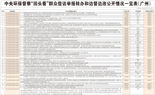 [廣州日報]中央環保督察“回頭看”群眾信訪舉報轉辦和邊督邊改公開情況一覽表(廣州)