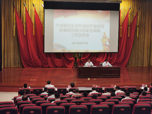 2021年8月27日上午,南沙區召開中央第四生態環境保護督察組駐粵期間南沙區配合保障工作動員會。會議由區長董可同志主持,市委常委、區委書記盧一先同志就南沙區做好配合保障中央第四生態環境保護督察組駐粵期間各項工作進行安排部署。