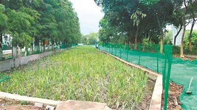 截至9月14日,南沙區政府組織相關部門打撈水草約300平方米;抽送積水約500立方米;完成積水池的清淤填埋和溝渠的清疏工作;對現場環境進行除四害消殺處理,復綠工程約完成40%。